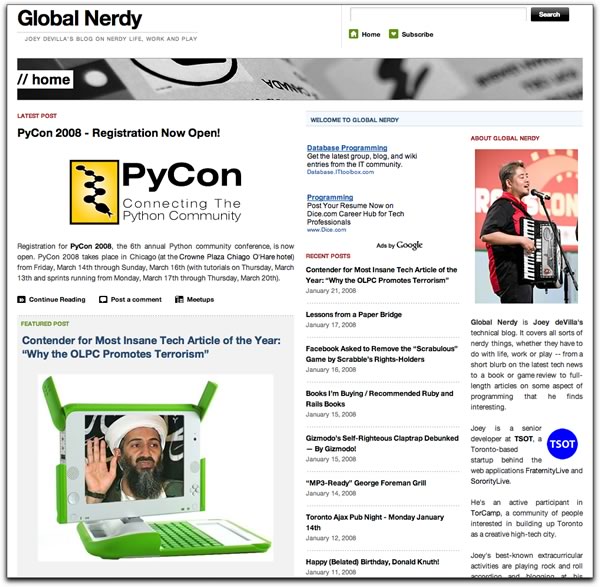 In a couple of weeks, TSOT — the company for whom I work — will be hosting its second Ruby/Rails Project Night at its offices (151 Bloor Street West, Suite 1130 — that’s just east of Avenue Road), where various Ruby and Rails developers do presentations on their current project or some aspect of Ruby or Rails. The first was a hit, and if you want to see some pictures, they’re here. As usual, I’ll be doing the opening monologue at Project Night, and I promise it’ll be entertaining.