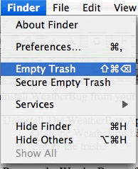 “Empty Trash” being selected from the Mac “Apple” Menu