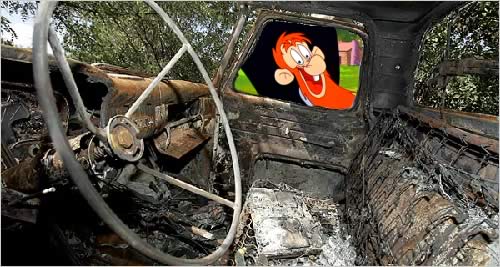 Nice beard, dude! A photo from The New York Times, which they captioned with “A Dell notebook computer in Thomas Forqueran’s pickup truck caught fire in July, igniting ammunition in the glove box and then the gas tanks.”