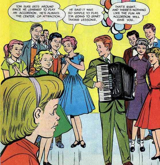 Old 1960’s comic in which the accordion player is the “center of attraction” at a teen party.