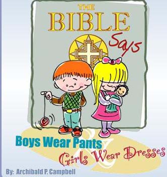 Categories Cover of “The Bible Says Boys Wear Pants, Girls Wear Dresses” Post author By Joey deVilla Post date September 23, 2007 No Comments on Cover of “The Bible Says Boys Wear Pants, Girls Wear Dresses” Leave a ReplyYou must be logged in to post a comment.