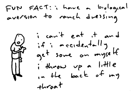 I consider ranch dressing to be “the dressing of last resort”, but according to this report from the Association for Dressings and Sauces, it’s America’s favourite salad topping and dip. Slate has more in their article on the inoffensive white goo that’s covering salads, chicken wings and pizza crusts all over the U. S. of A..