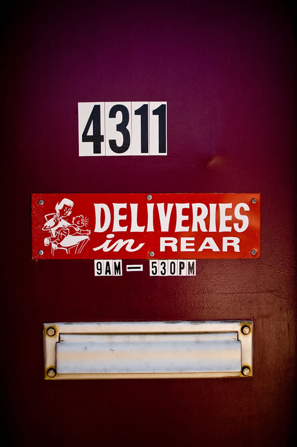 Somewhere in Scarberia (along the bus route to the zoo), there’s a porn shop with a big “deliveries in rear” sign. No spanking graphic, but it always makes me laugh.