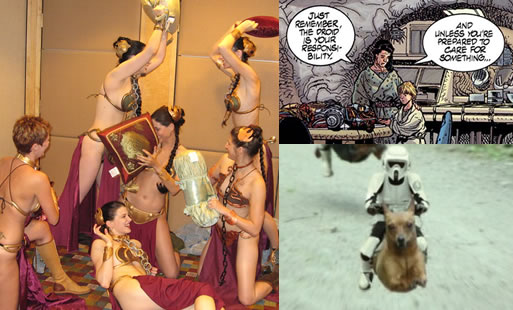 - Slave Leia Pillow Fight: Six women. In the “gold bikini outfit” from Return of the Jedi. Having a pillow fight. Why are you still reading this?