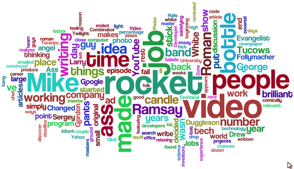 Categories assrockets_and_opportunities_wordle Word cloud for the blog entry “Assrockets and Opportunities” generated by Wordle. Post author By Joey deVilla Post date June 11, 2008 No Comments on assrockets_and_opportunities_wordle Leave a ReplyYou must be logged in to post a comment.