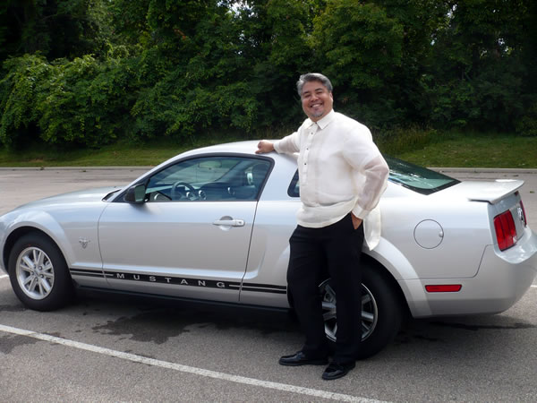 Here I am with the ‘Stang after the wedding, wearing my barong (in fact, it’s the barong I wore at my wedding). No, it wasn’t a Filipino wedding — it was a Jewish one, in fact — but it’s light and cool, making it perfect formal wear for hot, muggy weather.