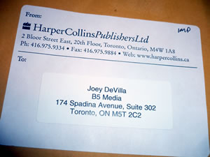 Categories HarperCollins mailing label with Joey deVilla’s work address Post author By Joey deVilla Post date July 22, 2008 No Comments on HarperCollins mailing label with Joey deVilla’s work address Leave a ReplyYou must be logged in to post a comment.