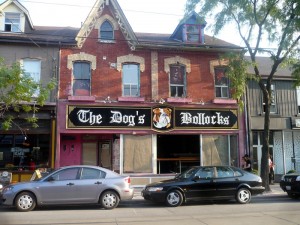 Categories The Dog’s Bollocks pub on Queen Street West The Dog’s Bollocks pub on Queen Street West Post author By Joey deVilla Post date September 3, 2008 No Comments on The Dog’s Bollocks pub on Queen Street West Leave a ReplyYou must be logged in to post a comment.