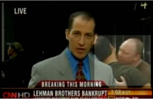 Sal and Richard from Howard Stern making out in front of Lehman Brothers on CNN