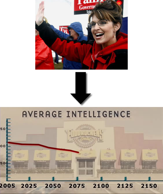 Categories Sarah Palin and the Idiocracy IQ graph Sarah Palin and the Idiocracy IQ graph Post author By Joey deVilla Post date November 4, 2008 No Comments on Sarah Palin and the Idiocracy IQ graph Leave a ReplyYou must be logged in to post a comment.