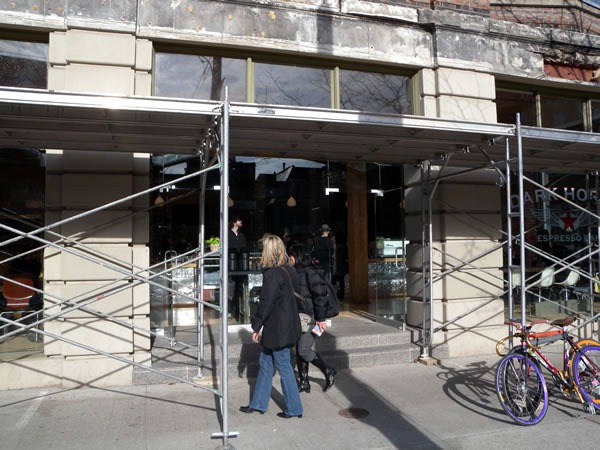 It’s not much to look at from the outside thanks to the scaffolding (but it looks rather New York-y that way)":