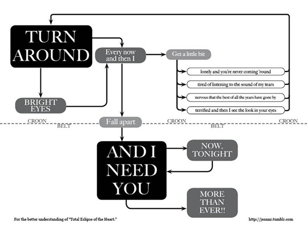 Here’s a flowchart for Bonnie Tyler’s eighties classic, Total Eclipse of the Heart: