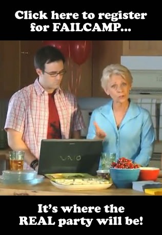 Joey deVilla (Microsoft, DemoCamp, accordion trouble-making) and John Bristowe (Microsoft) will host the event, encouraging you to confess your failures while sharing their own. FailCamp alumni Meghann Millard (Unspace, RubyFringe, FutureRuby) and Justin Kozuch (Refresh Events) and others will be the Panel of Fail whom you must impress in order to win prizes.