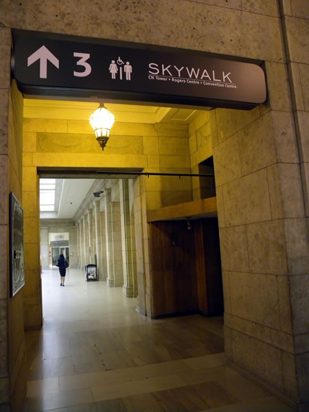 That’s the entrance to the actual Skywalk, which looks like this. Follow the signs to the door on the left that says “Convention Centre”…