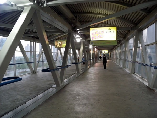 On the west end of the station – the side with the Harvey’s – you should see a sign marked “Skywalk”. Go down that hall!