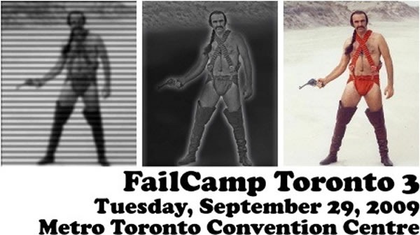 FailCamp Toronto 3 takes place tomorrow night – Tuesday, September 29th – at the South Building of the Metro Toronto Convention Centre, room 716 at 7:00 p.m.!