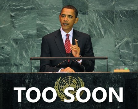 I sort of get the “he hasn’t earned it yet” sentiment, but that kind of presumes that the NPP is a straight-up competition that there are rules and qualifications for… which it isn’t, and there aren’t. It’s easy for us to just see a president in his first term, but if he’s made a big enough impression on the rest of the world already, then who are we to say that the prize committee made a mistake (he’s not even the first politician to receive the award “preemptively”)? The truth is, a bunch of people said he hadn’t earned the presidency yet (maybe LATER, they’d say, after he’d accomplished some more), but the majority voted for him anyway. Apparently the same thing happened in Oslo, so who are we to judge them? Also, should we really think that he will act any differently during the next four years whether he gets the award now or later? I certainly don’t, so I don’t think there is any problem with celebrating the fact that the international community thinks he’s as awesome as I do now (that’s why I voted for him). I care more about his continuing the work he’s begun than whether it would “mean more” or if he’d “earn it more” later—in fact, I think it’s unhelpful to spend time questioning it.