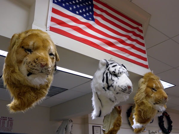Nothing spruces up the cab of an 18-wheeler like a plush white tiger:
