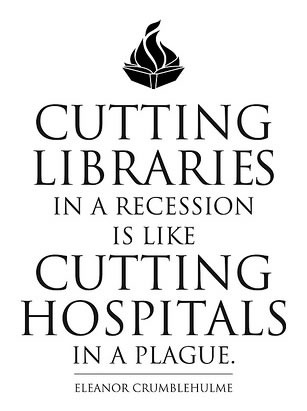 Full props to the sentiment, but to be more precise — wouldn’t cutting libraries during a recession be more like cutting pharmacies in a plague, and cutting education more like cutting hospitals?