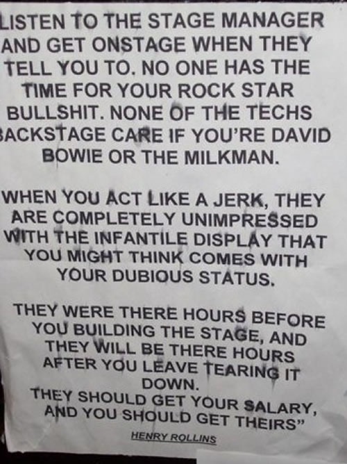 I much prefer Henry Rollins’ rules for live rock musicians: