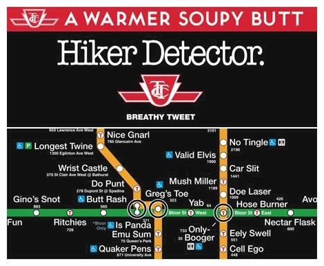 Back in 2006, there was a craze for making subway anagram maps – maps of subway systems with names on the maps changed into anagrams (rearrangements of the letters). For example, in John “Robot Johnny” Marsh’s anagram map for the TTC, Bathurst became Butt Rash.