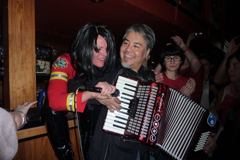 “When you gonna break that thing out?” said a guy behind me, pointing at my accordion, which I was wearing like a backpack.