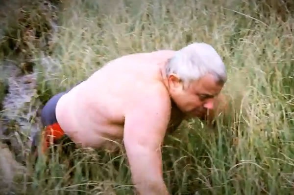 Having reached the other side, he crawls through reeds, presumably so that his pursuers won’t see him. However, as he crawls, he’s carving a very obvious trail: