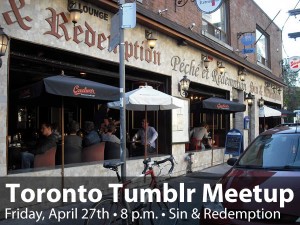 toronto tumblr meetup Post author By Joey deVilla Post date April 26, 2012 No Comments on toronto tumblr meetup Leave a ReplyYou must be logged in to post a comment.