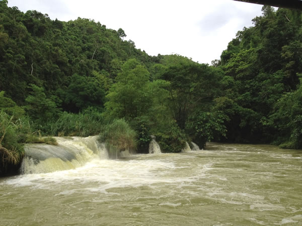 The boat travels about an hour upriver while the passengers eat, after which it reaches this point and turns around:
