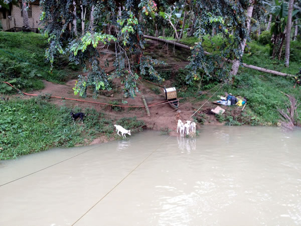 Seeing our boat, a number of stray dogs gathered nearby on the shore: