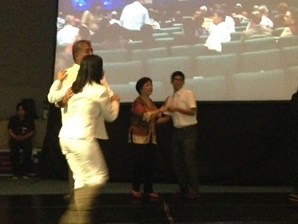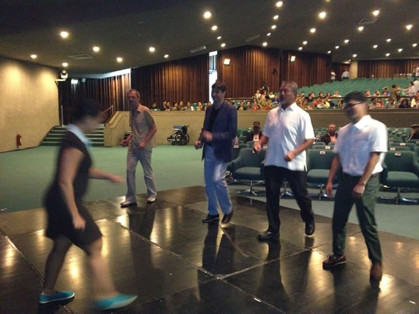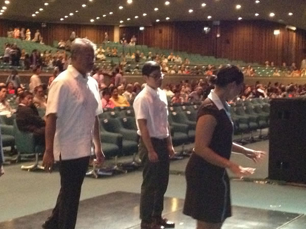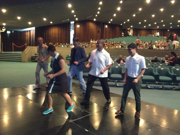 In the meantime, the audience continued to be seated, and the people on the right side of he auditorium had an unobstructed view of our lesson.
