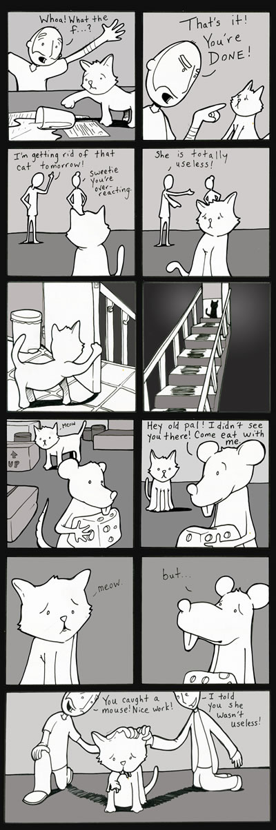 Although the cat’s facial expression indicates otherwise, the hopeful me imagines they concocted a plan where the mouse is only playing dead.