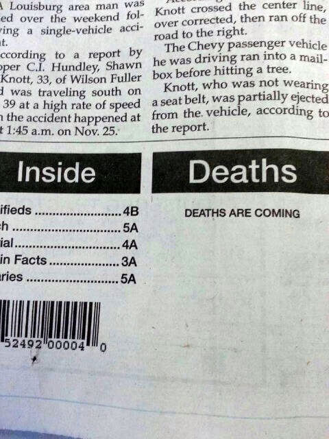 DEATHS ARE COMING Post author By Joey deVilla Post date October 1, 2013 No Comments on DEATHS ARE COMING Leave a ReplyYou must be logged in to post a comment.