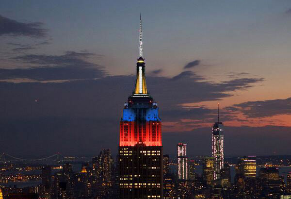 In a very touching expression of support, the Empire State Building donned the blue, red and yellow colors of the Philippine flag on Friday night (Saturday morning in Manila). The Empire State Building tweeted the amazing display, which will be repeated on Saturday night (Sunday in Manila).