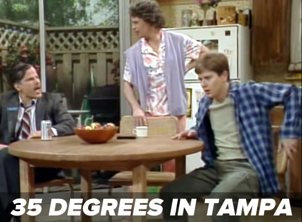 It won’t quite hit 35 degrees (Celsius; that’s 95 degrees Fahrenheit) in Tampa today — the expected high is a mere 32°C/90°F — but that’s no excuse not to post this classic Kids in the Hall sketch titled 35 Degrees in Tampa: