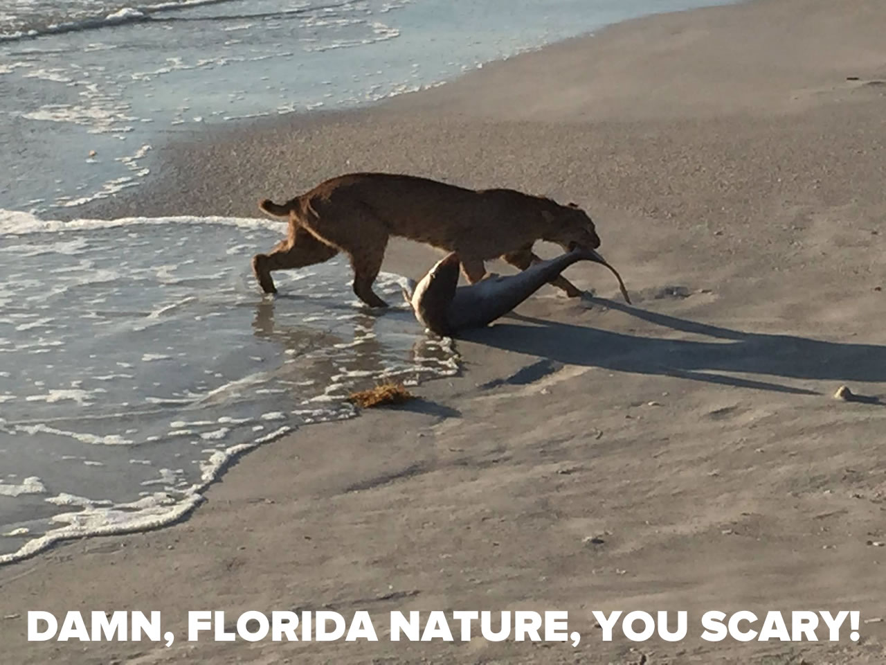 You might think that the bobcat would’ve gone for some of the fish the shark didn’t get, but this is Florida, where no idea is a bad one, and where it’s almost the law that your reach should exceed your grasp in high-larious, newsworthy ways.