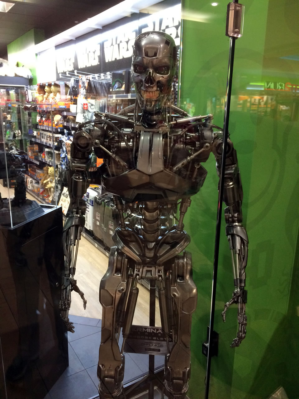 Visitors to the store will be greeted by a lot of metal. First, by the Terminator: