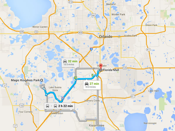 Click the image to get the Google Maps directions from the Magic Kingdom to the ThinkGeek Store.