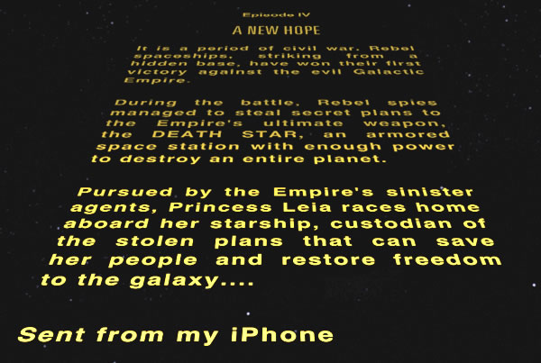 special edition opening crawl Post author By Joey deVilla Post date December 23, 2015 No Comments on special edition opening crawl Leave a ReplyYou must be logged in to post a comment.