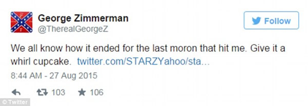 This is the tweet that got Zimmerman’s Twitter account suspended.