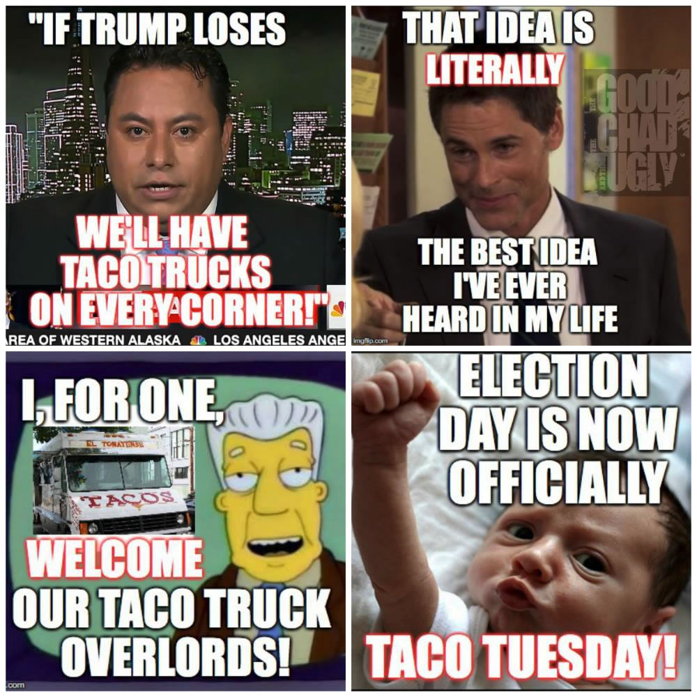 …and in the end, it looks like the day of the election — Tuesday, November 8, 2016 — shall henceforth be known as Taco Tuesday!