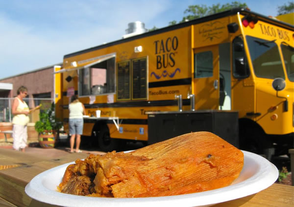 …my first thought was “Hey, I’d love to have a taco truck on my corner!” Besides, it would go well with our local ice cream place: