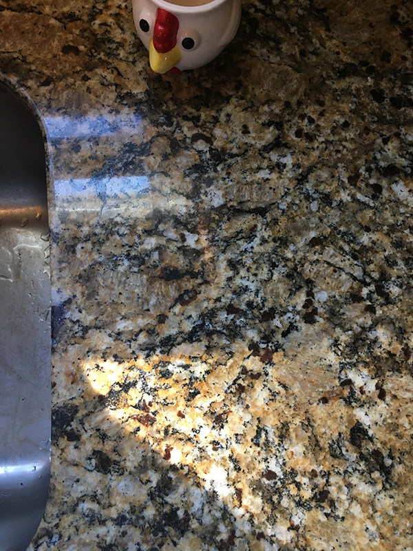 A couple of weeks ago, it happened to our kitchen counter, along the edge facing the right side of the kitchen sink.