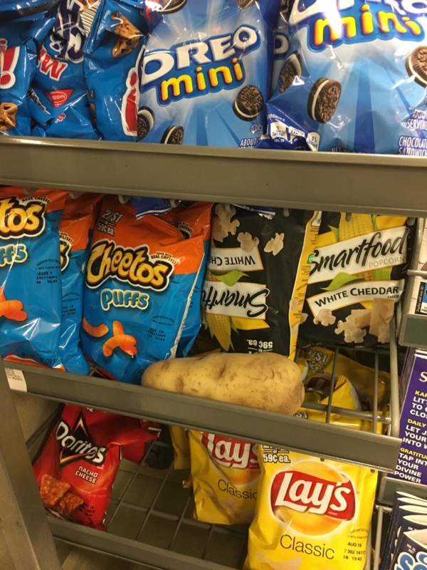 After taking the photo above, I passed the potato to the cashier and said “Decisions were made.” We had a good laugh.