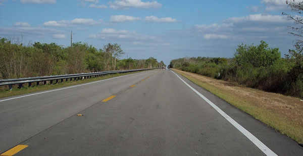 In southern Florida, the fast way to shoot between the west and east coasts is to take that part of Interstate 75 called “Alligator Alley”, which connects Naples to Fort Lauderdale. It crosses the everglades and offers little to see except swamp, swamp, and more swamp, and is meant to simply be traveled through as quickly as possible.
