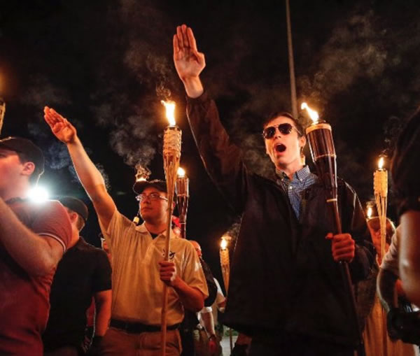 Charlottesville: far-right crowd with torches encircles counter-protest group