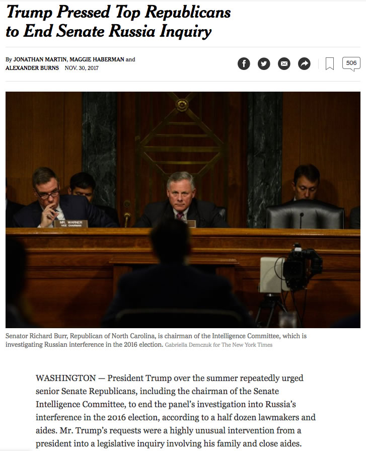 trump pressed top republican to end senate russia inquiry Post author By Joey deVilla Post date December 1, 2017 No Comments on trump pressed top republican to end senate russia inquiry Leave a ReplyYou must be logged in to post a comment.