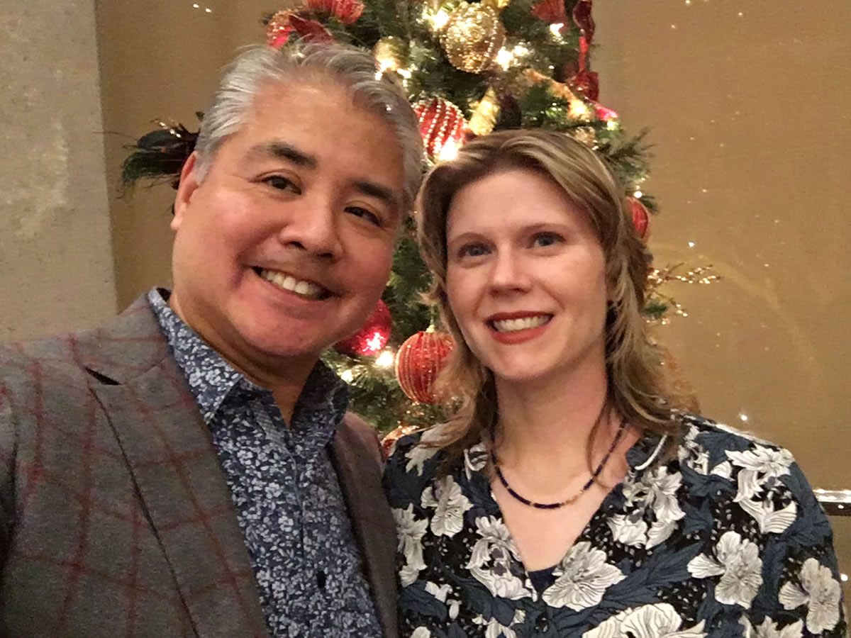They had an “Ugly Christmas Sweater” contest, in which Anitra (pictured above and on the right) won the prize for Most Hilarious Sweater — her Christmas with Darth Vader sweater, complete with red LED-illuminated lightsabers.