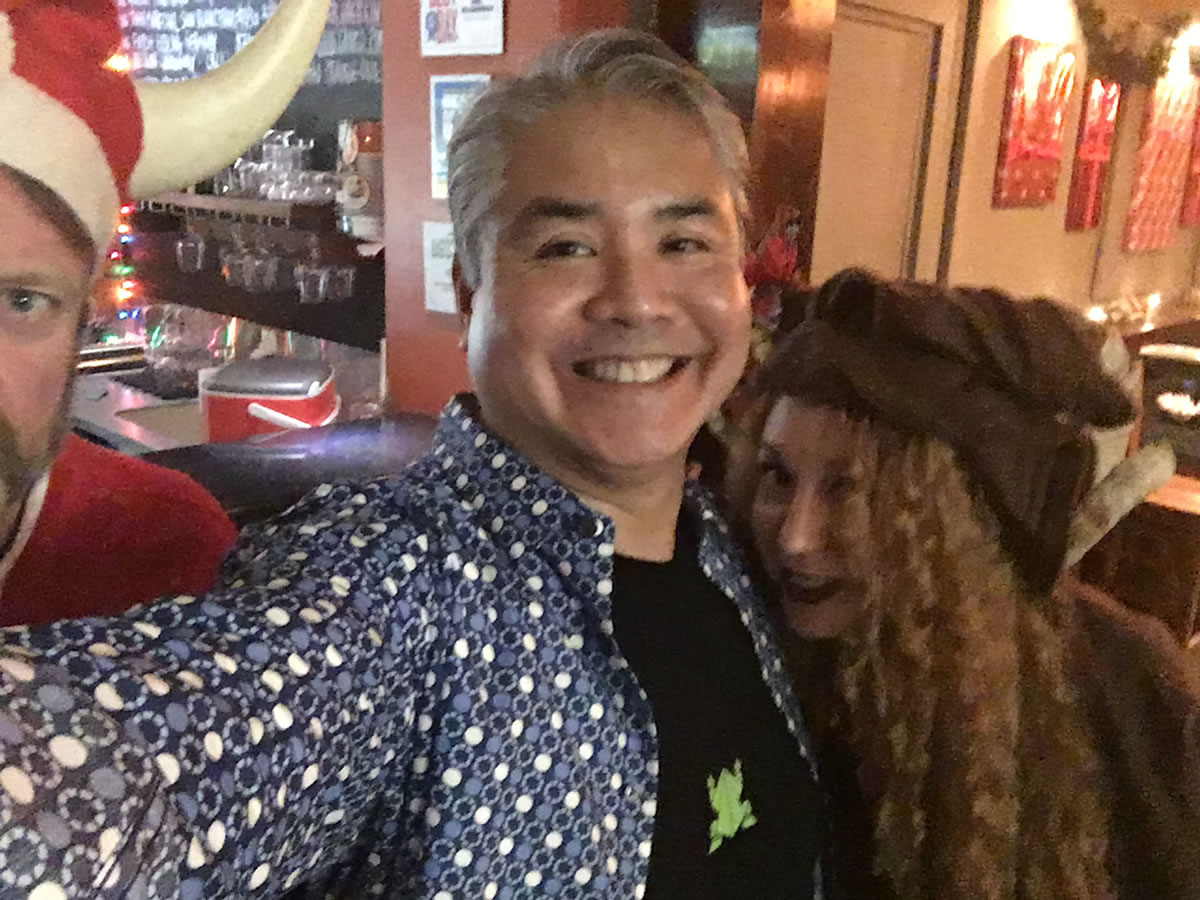 The Independent was celebrating Krampusnacht with a buffet of German dishes that sounded tasty (especially the sausages and spätzle) and a Krampus costume contest, where the entrants ran the gamut from “Santa with horns” to “full-on goat demon”. I posed with a couple of them, as you can see from the photos above.