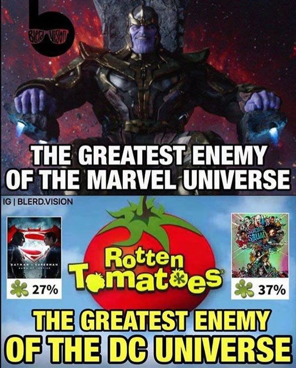 It’s funny, because it’s true. And how did Suicide Squad — fantastic idea, terrible execution, and geez, they could’ve simply copied the much better animated version (Batman: Assualt on Arkham) — get a better rating than Batman v. Superman: Dawn of Justice?